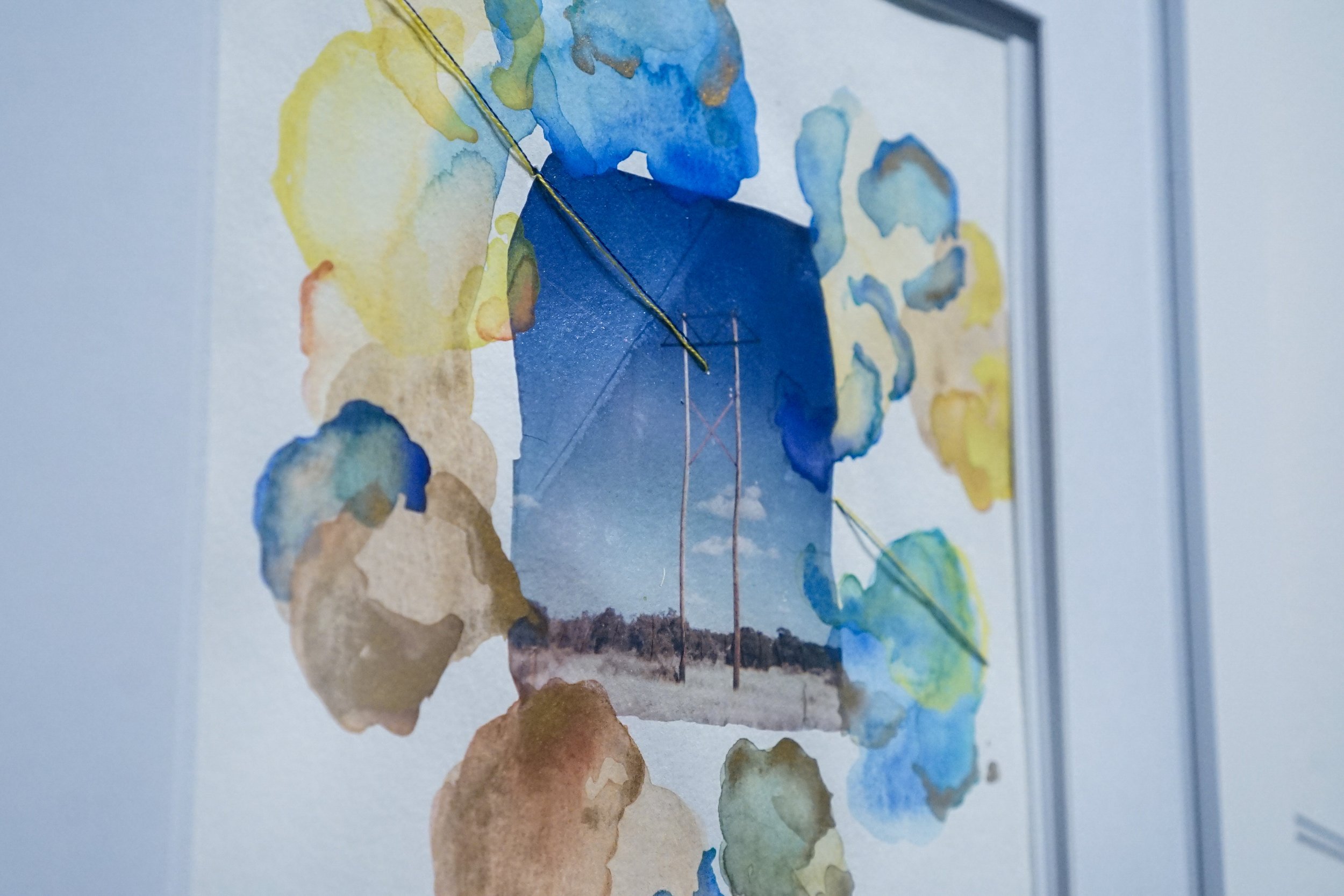 Within//Without contains a series of 10 pieces made with polaroid emulsion lifts, watercolors, and embroidery. The show consisted of an installation aspect that connected each piece to another with a thread of embroidery, literally leading the viewer around the gallery. The show also contained a video piece showing the process for making the pieces and bits of audio from the artist reciting their artist statement.